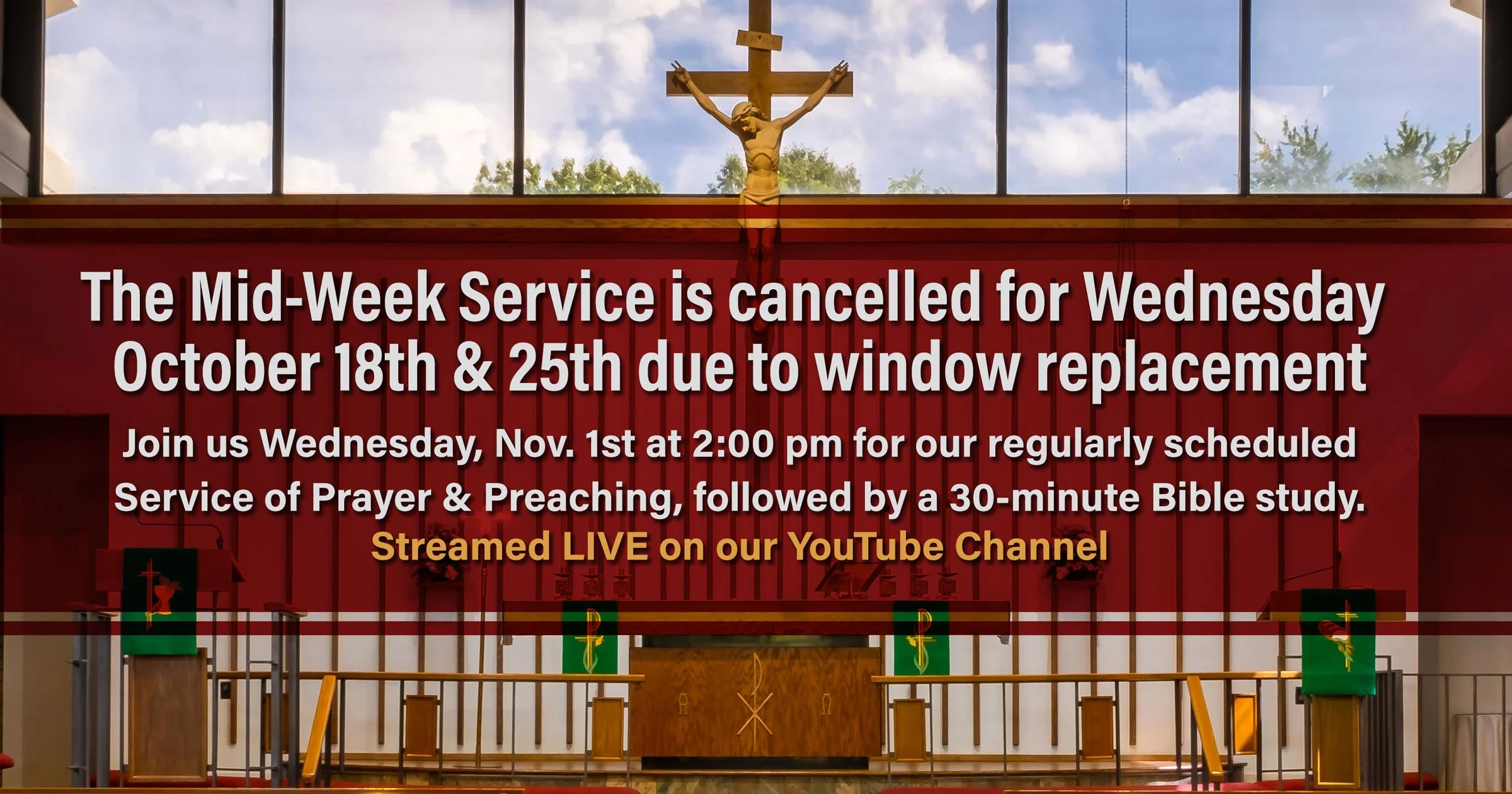 Join us Wednesday, November 1st at 2:00 p.m. for our regularly scheduled Service of Prayer & Preaching (streamed LIVE on our YouTube Channel), followed by a 30-minute Bible study.