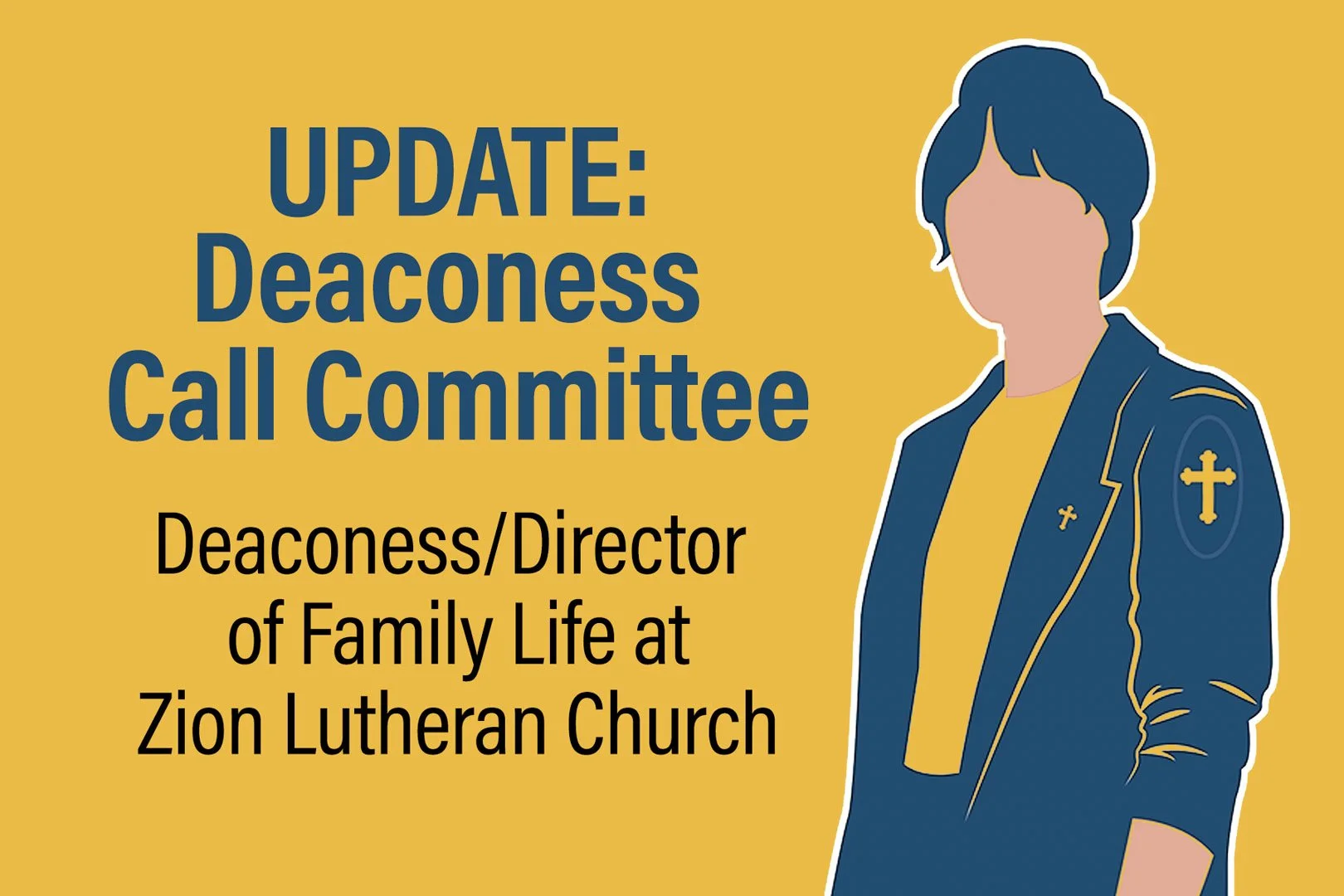 At our January Voters' Meeting, voters authorized the formation of a Call Committee to review candidates and make a recommendation to voters for a Deaconess/Director of Family Life at Zion. Zion's Constitution (II.A.6) states that any communicant member may nominate a candidate for any called position to the Call Committee.