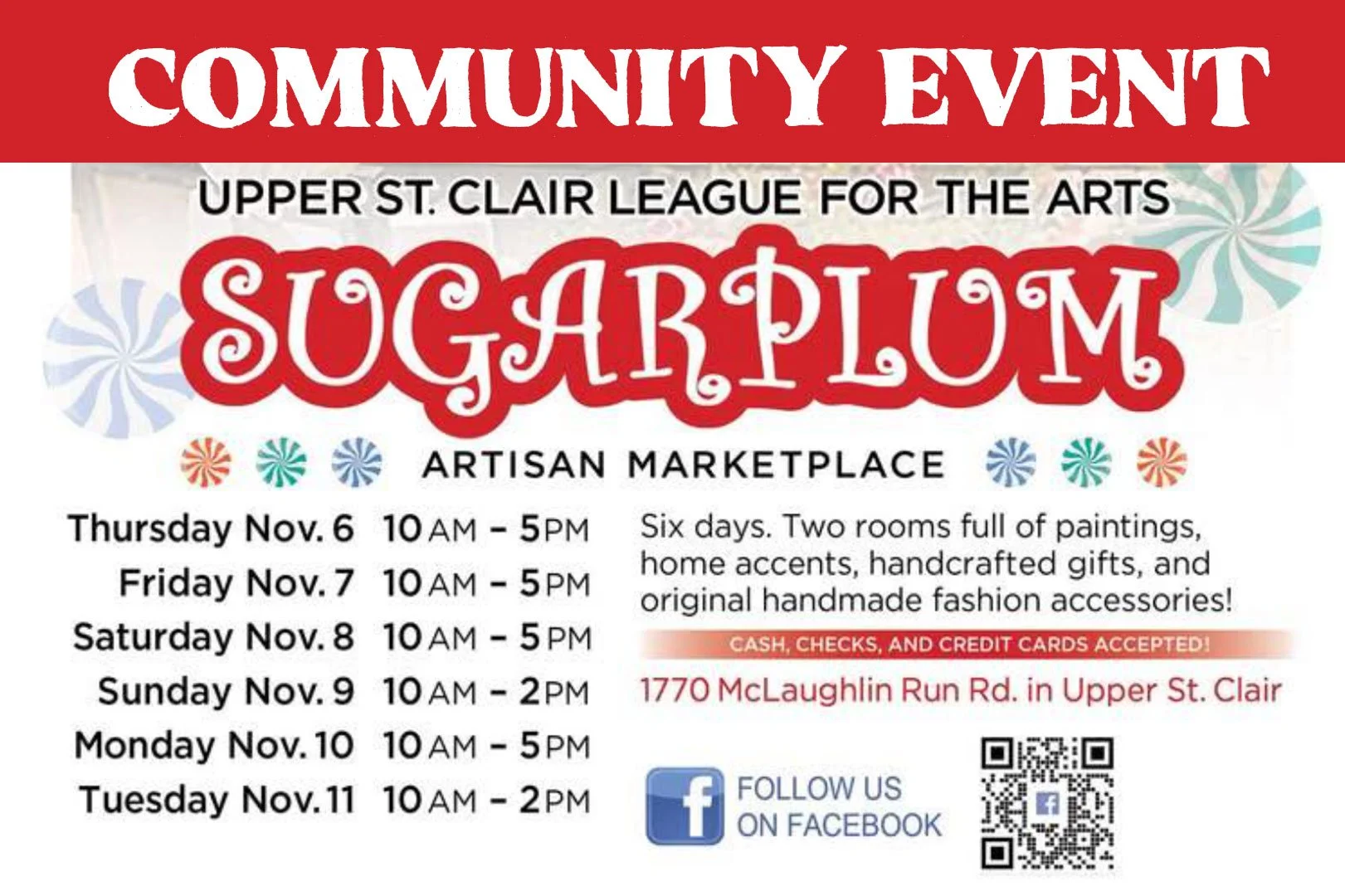 It’s time for our 6-day sale with 2 rooms FULL of handcrafted gifts, seasonal decorations, handmade jewelry, fashion accessories, original wall art and more, all locally made. Upper St. Clair League for the Arts.