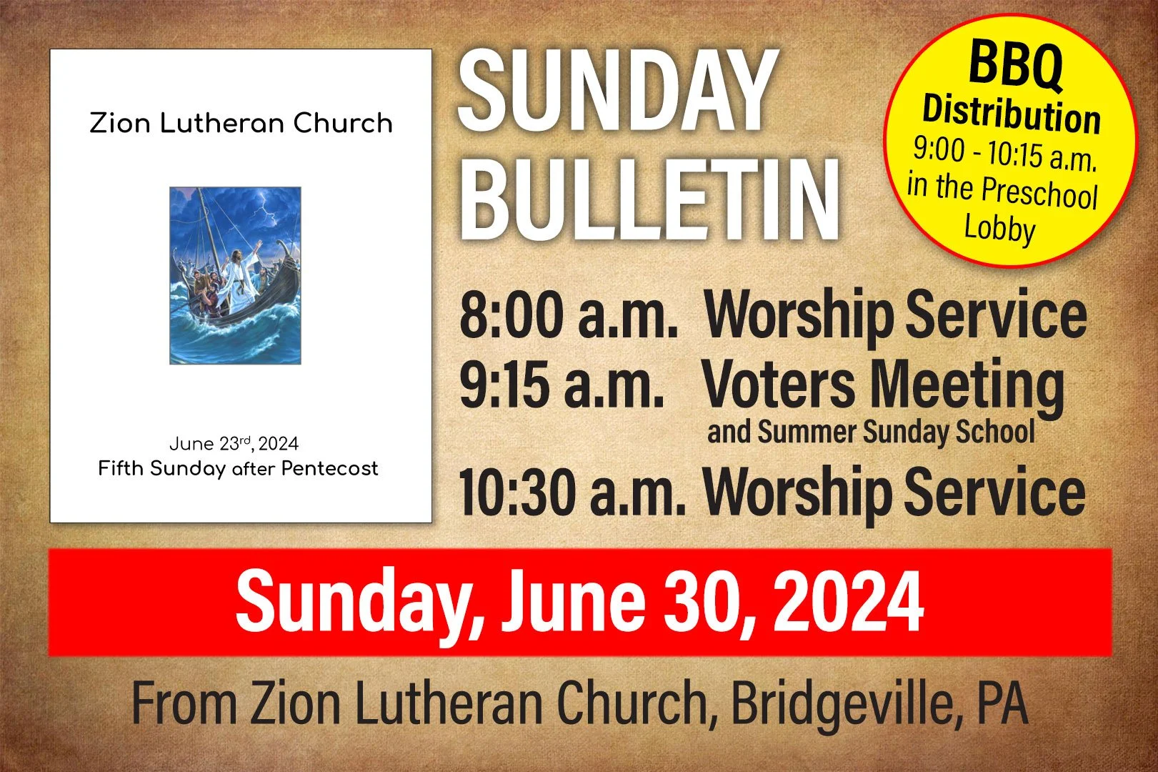 9:15 a.m. — Voter’s Meeting for Zion’s Budget & Children’s Summer Sunday School