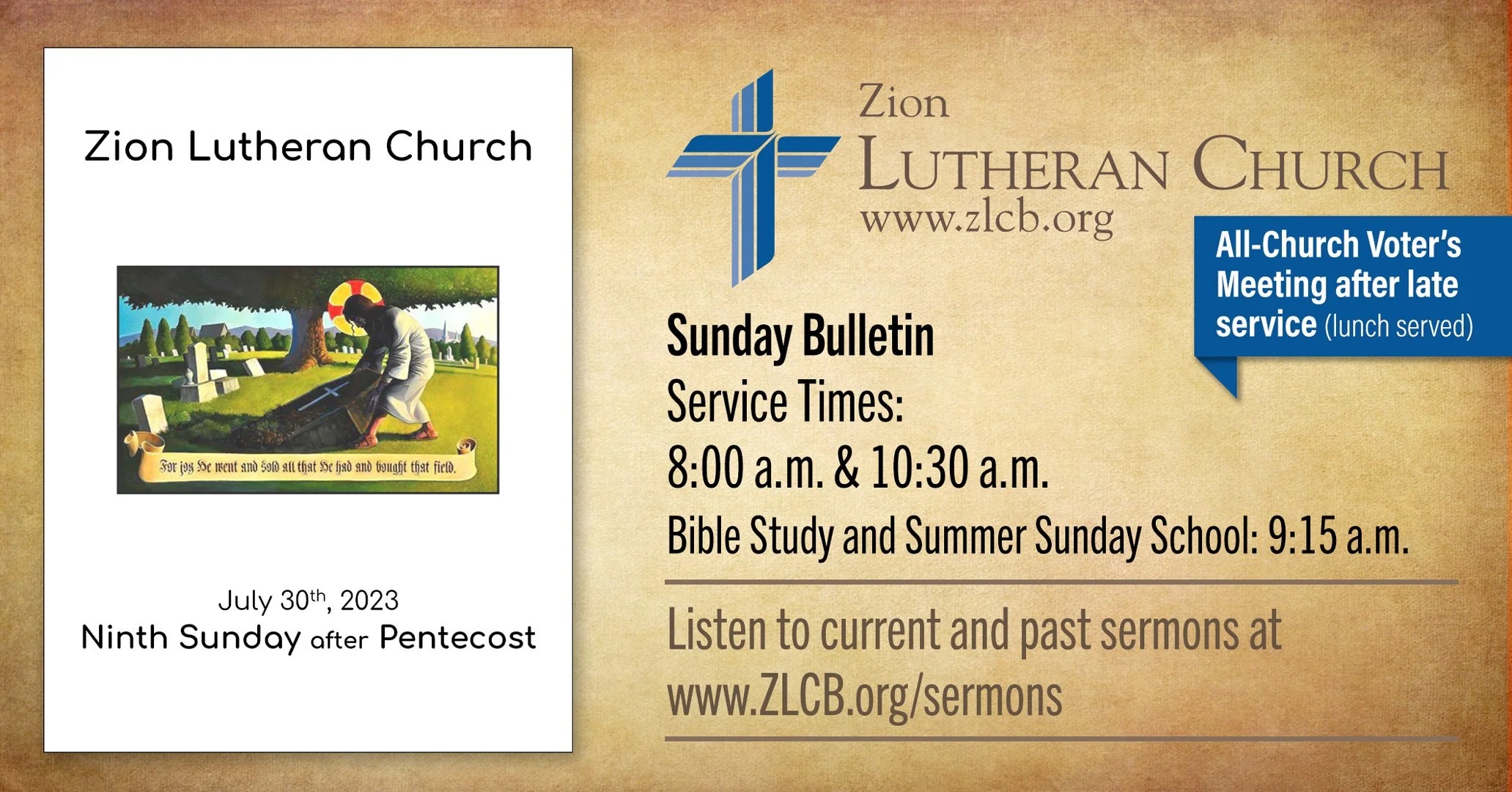 Voter’s Meeting following late Service — Lunch will be served!
