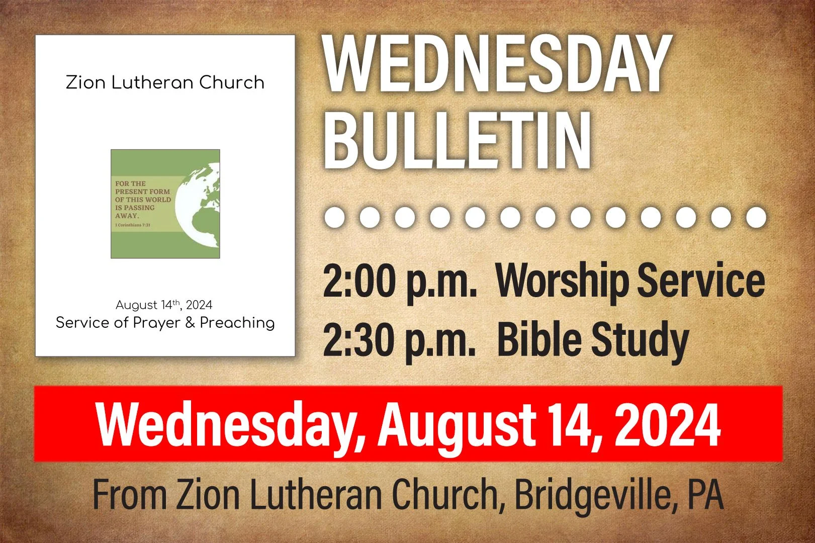 View the Bulletin for Wednesday, August 14, 2024