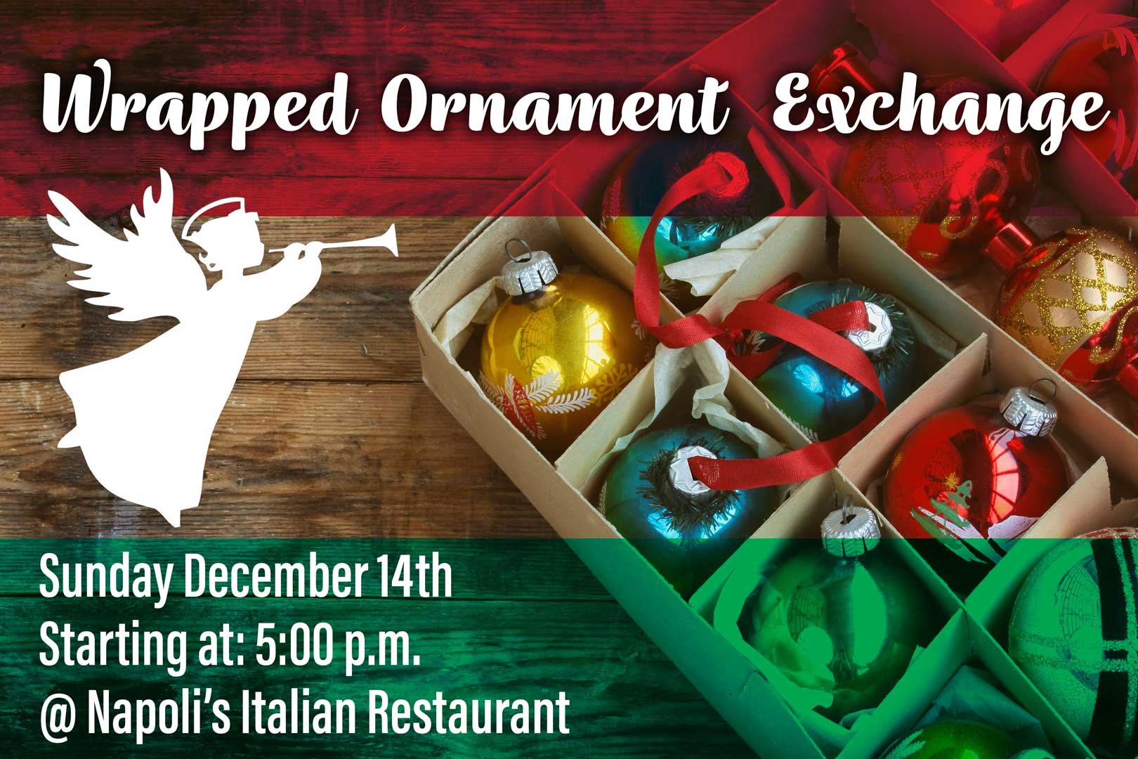Please bring a new ornament of your choice wrapped with no tag.