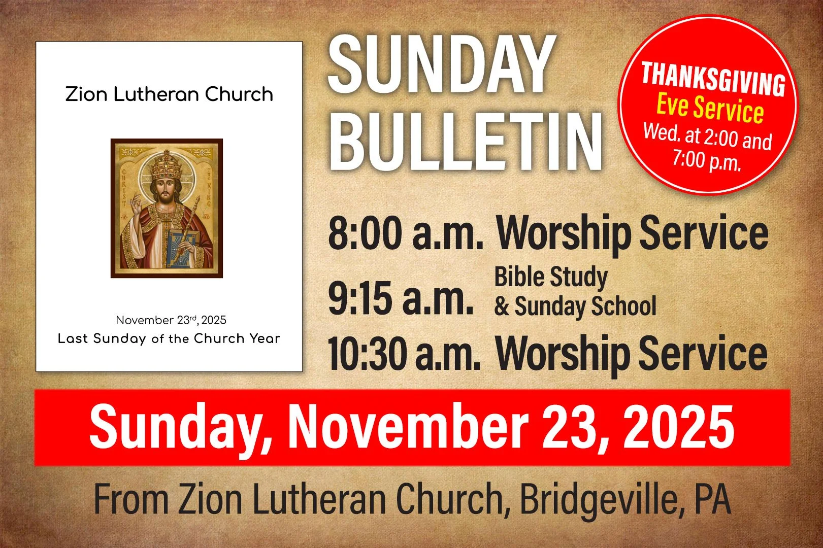View the bulletin for Sunday, November 23, 2025